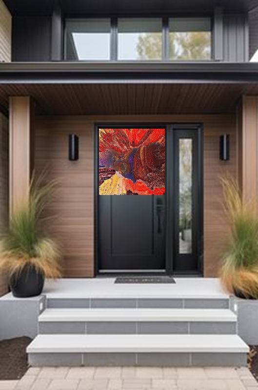 THE ABOVE IMAGES ARE INTENDED FOR THE METALLIC PANELS, INSTALLED ON HOUSE FRONT DOORS, BUT THEY CAN ALSO BE ORDERED IN A CANVAS PANEL SIZED 36" X 24" X 1 /12"DEEP FOR A WALL ART INSTALLATION(OTHER SIZES AVAILABLE). SIMPLY CONTACT OUR COMPANY TO ANSWER ANY QUESTIONS YOU MAY HAVE. THE PRICE FOR THE SIZE OUTLINED ABOVE IS....$130.00, DELIVERY COST INCLUDED IN THE PRICE.