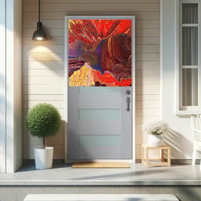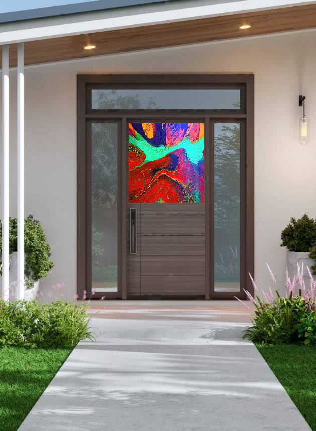 THE ABOVE IMAGES ARE INTENDED FOR THE METALLIC PANELS, INSTALLED ON HOUSE FRONT DOORS, BUT THEY CAN ALSO BE ORDERED IN A CANVAS PANEL SIZED 36" X 24" X 1 /12"DEEP FOR A WALL ART INSTALLATION(OTHER SIZES AVAILABLE). SIMPLY CONTACT OUR COMPANY TO ANSWER ANY QUESTIONS YOU MAY HAVE. THE PRICE FOR THE SIZE OUTLINED ABOVE IS....$130.00, DELIVERY COST INCLUDED IN THE PRICE.